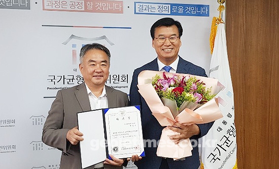 이날 송재호 위원장으로 부터 위촉장을 받은 문 위원장은 "앞으로 균형위가 주도하는 생활SOC 복합화사업과 신성장동력산업의 기반조성, 해양관광산업 활성화를 위한 도로망 구축 등 거제시에 수혜가 돌아올 수 있도록 최선의 노력을 다 하겠다"고 말했다.
